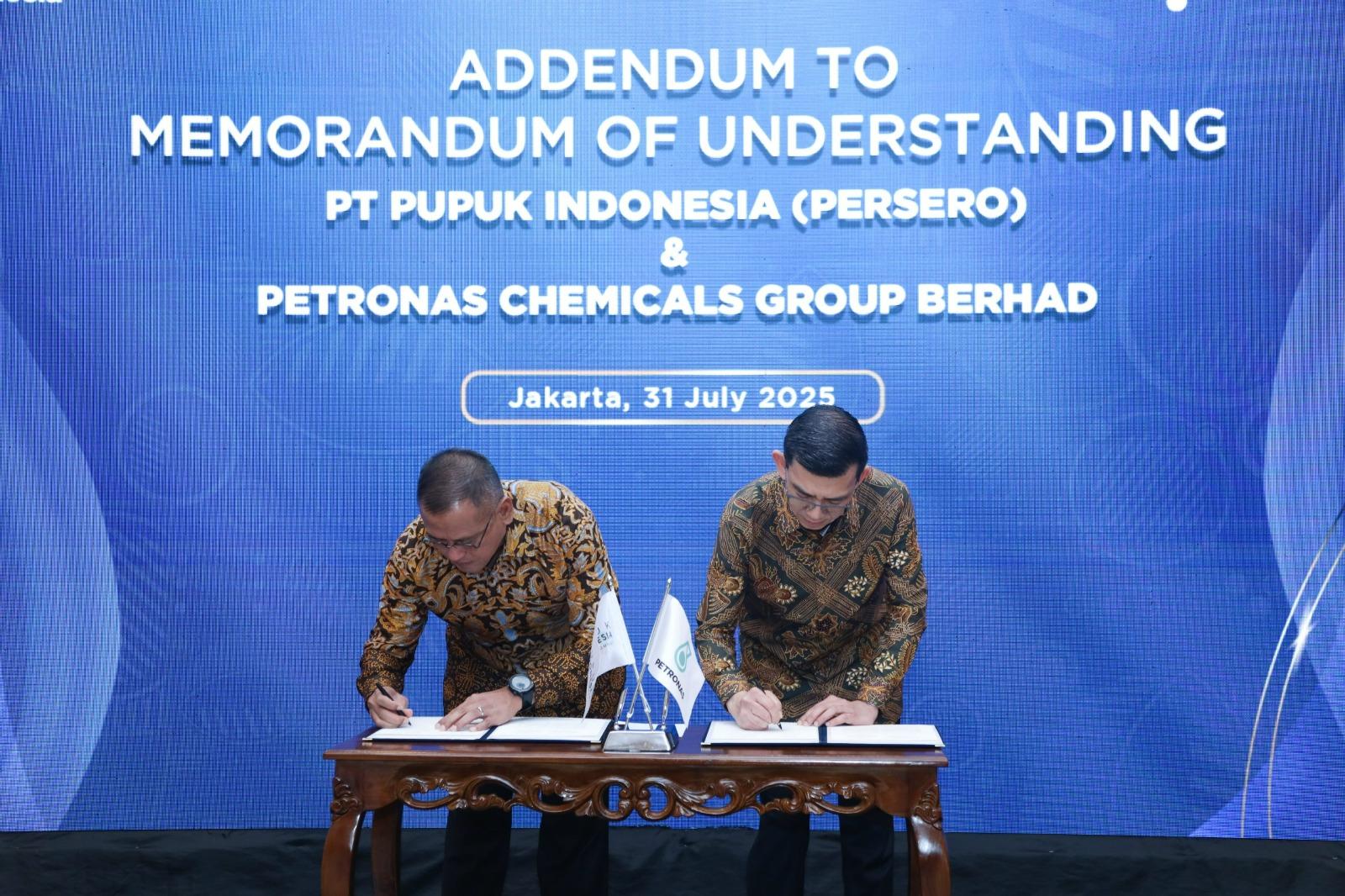 Jakarta, BisnisJatim.Id – PT Pupuk Indonesia (Persero) dan PETRONAS Chemicals Group Berhad (PCG) memperkuat kemitraan strategisnya melalui penandatanganan kelanjutan nota kesepahaman (MoU) yang membuka peluang kolaborasi lebih luas dalam mendukung ketahanan pangan nasional dan regional, serta mendorong hilirisasi industri pupuk dan petrokimia di Indonesia.